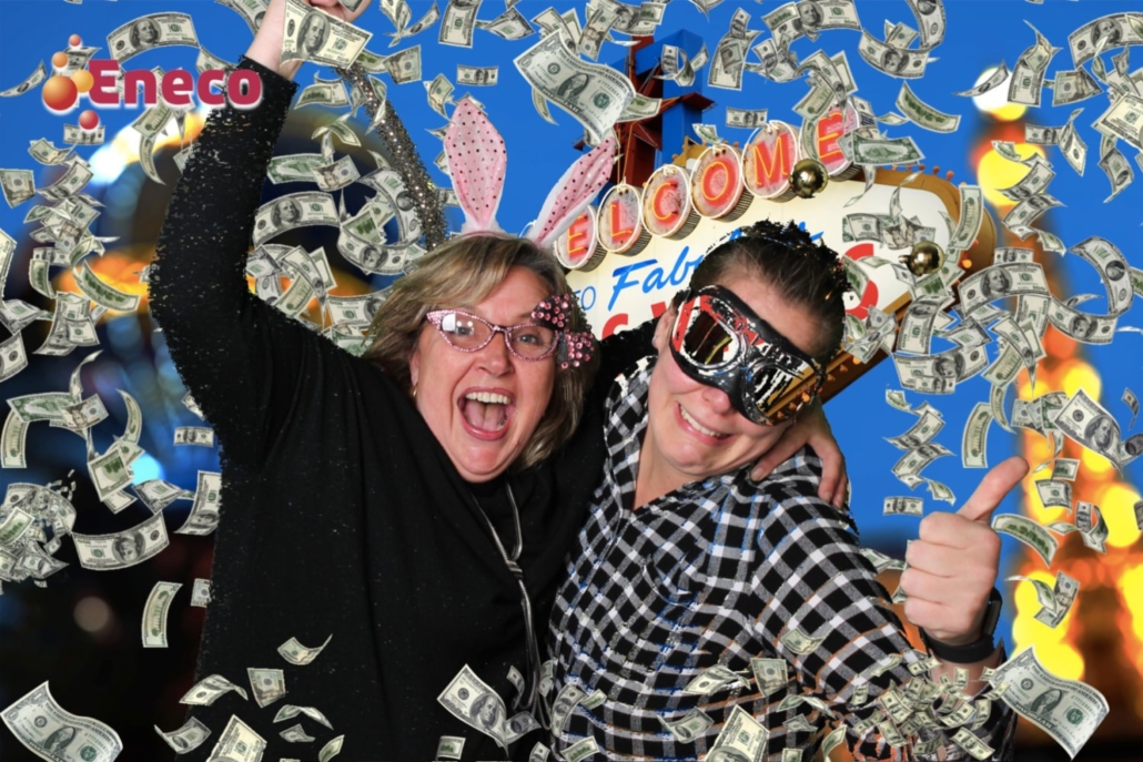 Belangrijk om te vertellen is dat wij expres geen gebruik maken van een hokje, maar van een stijlvolle fotozuil en achtergrond. In een hokje bevind zich het plezier achter de gordijntjes. Dat ziet niemand. Zonde, want door het plezier in de fotostudio worden de andere gasten ook enthousiast. In onze open opstelling heb je alle ruimte en kun je op de foto met wel 10 personen! Onze entertainer breekt altijd het ijs, geeft tips en ideeën en zorgt voor heel veel hilarische foto’s. Als je een thema hebt, kun je dit bij ons tot in de details doorvoeren met een achtergrond, accessoires en decorstukken.