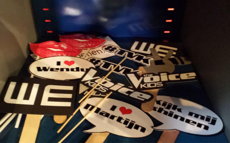 Als je regelmatig de photobooth verzorgd op personeelsfeesten van Talpa gaan ook bij de redacties daar de raderen draaien. Zo werden we gevraagd om in een seizoen van The Voice Kids de sponsorshoots van WE Fashion te verzorgen. Kinderen die auditie kwamen doen op het mediapark in Hilversum mochten in de gestileerde winkel van WE Fashion hun favoriete outfit uitzoeken en vervolgens kijken welke props – in het thema van ‘The Voice’ – ze mee wilden nemen in de photobooth.
